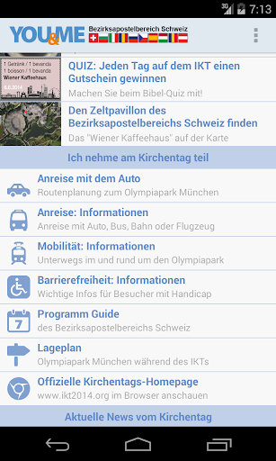 Die News-App des Bezirksapostelbereichs Schweiz „NAC You&Me“ versorgt die Teilnehmer des Internationalen Kirchentags 2014 und alle Interessierten mit Neuigkeiten und Informationen zum Kirchentag: