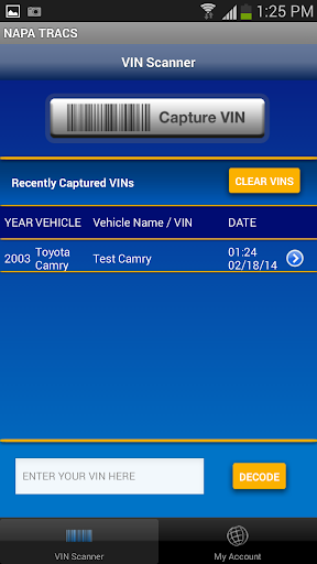 NAPA TRACS users may capture and decode vehicle information numbers (VIN) codes at the vehicle with the new NAPA TRACS Mobile VIN Capture app. Once the VIN has been captured and decoded on your mobile device, the VIN and vehicle will immediately appear in the NAPA PROLink catalog option in your TRACS software where you may use it to begin a NAPA catalog part search, attach it to a new or existing customer or begin an estimate or work order.