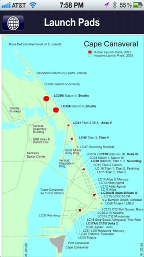 - A map of all NASA launch pad facilities at Cape Canaveral, Florida.