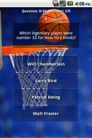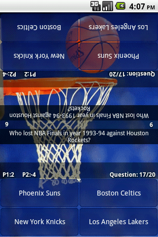 The NBA Quiz Challenge contains questions about all NBA-Teams like Boston Celtics,Brooklyn Nets,New York Knicks,Philadelphia 76ers,Toronto Raptors,Chicago Bulls,Cleveland Cavaliers,Detroit Pistons,Indiana Pacers,Milwaukee Bucks,Atlanta Hawks,Charlotte Bobcats,Miami Heat,Orlando Magic,Washington Wizards,Denver Nuggets,Minnesota Timberwolves,Oklahoma City Thunder,Portland Trail Blazers,Utah Jazz,Golden State Warriors,Los Angeles Clippers,Los Angeles Lakers,Phoenix Suns,Sacramento Kings,Dallas Mavericks,Houston Rockets,Memphis Grizzlies,New Orleans Pelicans,San Antonio Spur; with all their history, achiements and legendary players like (Michael Jordan, Kareem Abdul-Jabbar, Scottie Pipen, Dennis Rodman, Magic Johnson, Reggie Miller, Larry Bird and others)