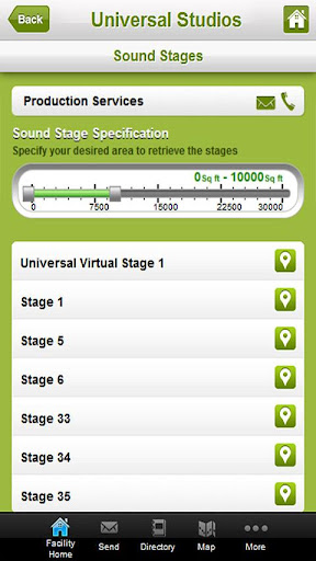 NBCU Studio mobile application is an interactive production tool for film makers. It provides all the necessary information about the 3 facilities at Universal Studios, Chicago and New York at the user's finger tip. Critical Information is offered about the various stage specifications, lots, maps, navigation to the stages, photos and much more to assist the film makers in completing their projects.