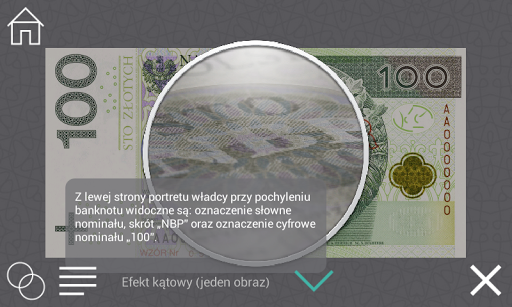 -dotknij ekranu, aby wyświetlić zabezpieczenia banknotu,
