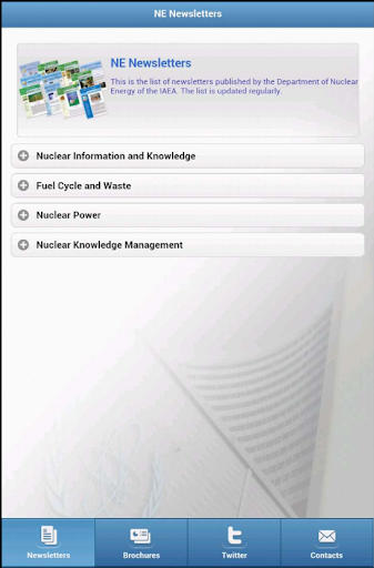 • Centralized access to all digital newsletters and information brochures published by the Department of Nuclear Energy;