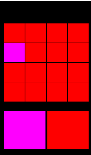 Có một khối 16 màu, trong đó có một ô có màu khác màu các ô còn lại. Có 2 đáp án phía dưới, chọn đáp án đúng có màu giống với ô khác màu đó. Một lần đúng được 1 điểm. Ô màu đen được 3 điểm.
