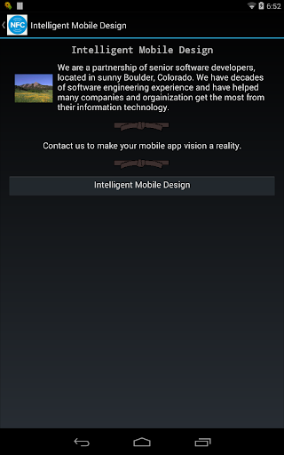 By default, NFC is disabled in most handsets. To use this app, and to use NFC on your device, you must enable NFC in your device settings. If NFC is not enabled on your device, this app displays a message and exits.