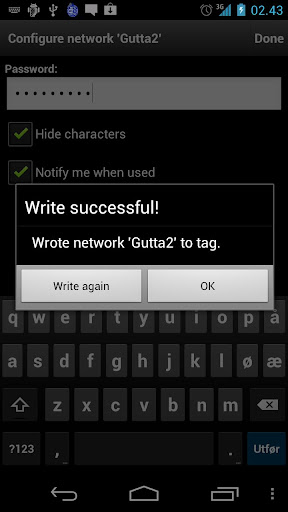 Make it easy for friends and family to join your wifi network! Write wifi credentials to an NFC tag and place it at an convenient location.