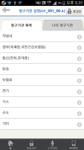 - 이용기관 등록 : 스마트폰을 통해 고지서를 조회하고 납부할 기관을 고객이 선택하여 사전에 등록