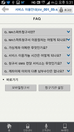 NH스마트청구서 앱은 공인인증서 로그인 후 사용이 가능합니다.
