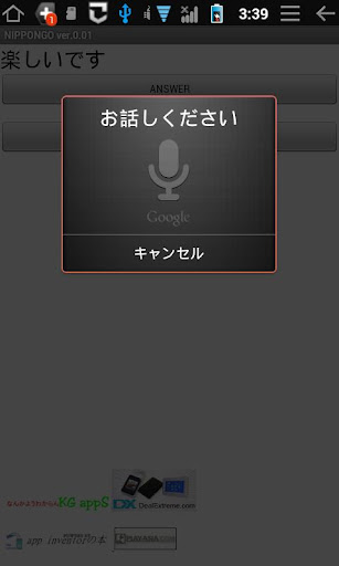 3.日本字出現在屏幕上,推動答案“按鈕,讓你發音。