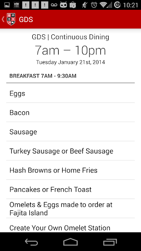 •Gourmet Dining Services: shows you the hours of operation, current menu, and any specials that are available