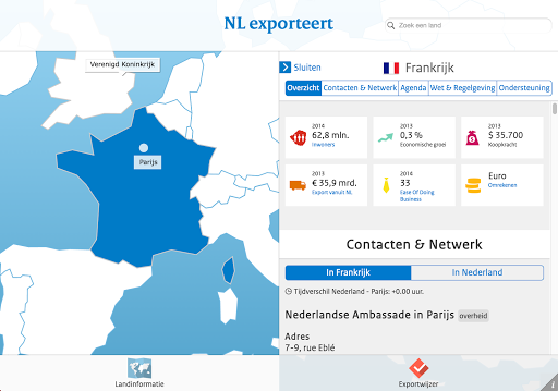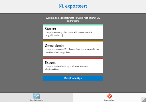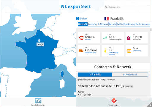 NL exporteert is dé app voor startende & ervaren ondernemers met grensverleggende ambities. De app biedt snel en eenvoudig actuele land specifieke informatie en geeft toegang tot lokale netwerken en adviezen. Hiermee is NL exporteertuw wegwijzer op buitenlandse markten.