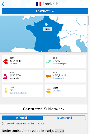 De interactieve wereldkaart geeft per land actuele info over geplande evenementen, de do’s & don'ts, macro-economische kerngegevens, financieringsmogelijkheden en de contactgegevens van ambassades en internationale netwerken wereldwijd. Zij kunnen u (verder) helpen bij uw stappen op buitenlandse markten.