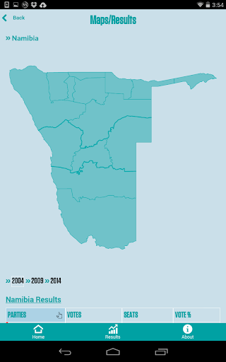 Get the Namibia 2014 election results in the palm of your hand with our election app. You can also view historical election results and find out more about the voting process. Brought to you by NMH - Namibia Media Holdings, The Namibian Sun, Republikein and Allgemeine Zeitung.