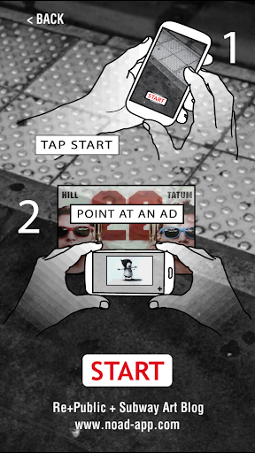 The NO AD mobile app replaces the top 100 NYC subway ads with digital art using augmented reality technology. In doing so, the app creates a new exhibition space on top of existing subway advertising infrastructure.