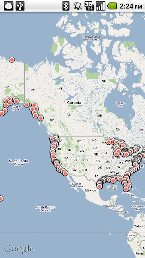 This applications covers the major tides stations for the oceans around the USA, including Alaska, Hawaii, Puerto Rico, Virgin Islands, Bermuda, Guam. See our screen shot of the map to get an idea.