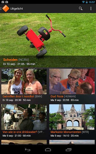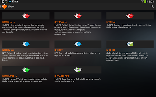 Met de NPO-app kun je live en on demand programma’s van de Nederlandse Publieke Omroep op je Androidtoestel kijken en luisteren. De tv-programma’s verschijnen kort na afloop van de uitzending op NPO 1, 2 en 3 en blijven dertig dagen beschikbaar.