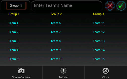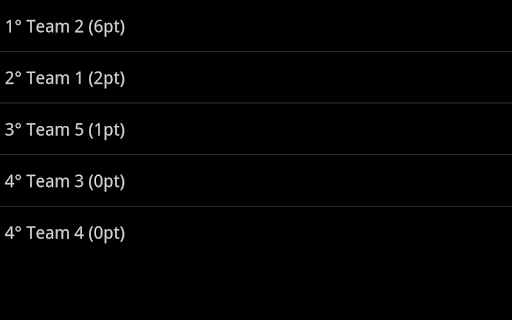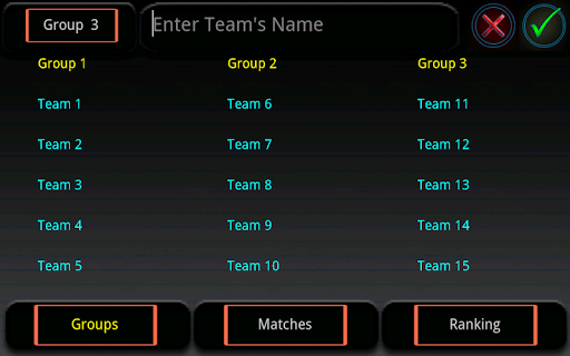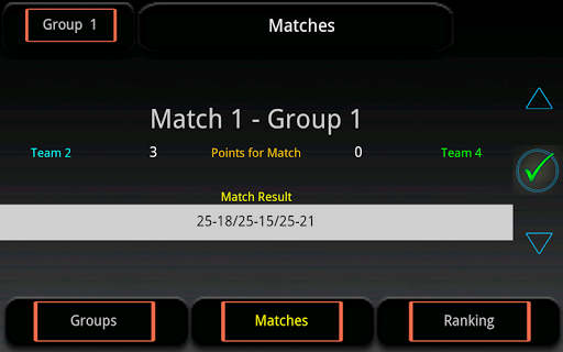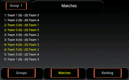 By touching the "matches" screen you'll enter the score screen where you can insert the points you wish to assign to each team for each match.