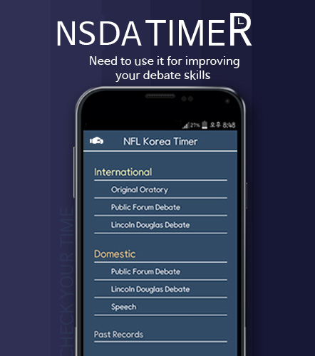 Since the National Speech & Debate Association stresses the importance of event rules and format, this smart phone application's objective is to enhance the skills of debaters and orators worldwide.