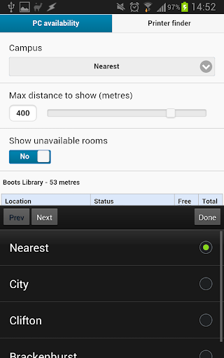 The Nottingham Trent University IT Finder provides a simple way to locate the nearest available PC at our City, Clifton and Brackenhurst campuses.