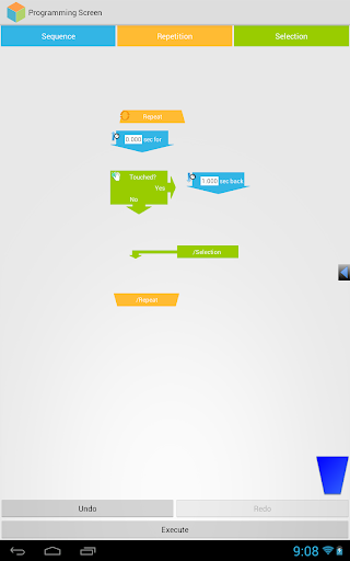 Users can make programs which control a robot by assembling blocks on an Android device (tablets are recommended).