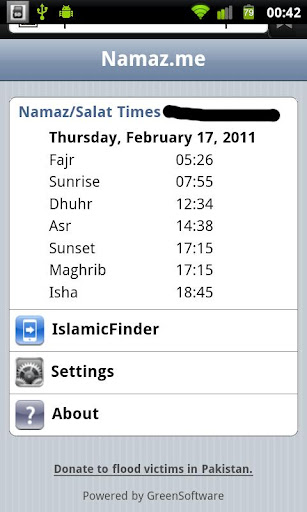 No matter where you go, just open the app or type www.namaz.me in your browser and get the Islamic Namaz/Salat/Prayer times for your current city or location, simple and clean.