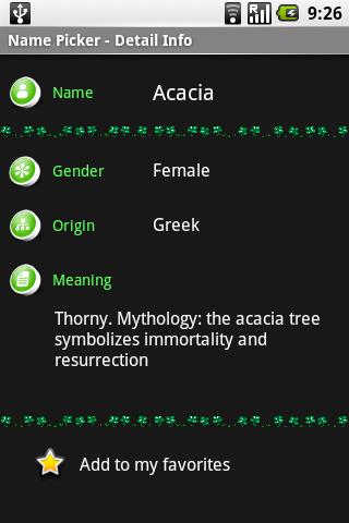 Name Picker is a handy tool specially designed for new parents and writers looking for name inspirations. Feature highlights: browse and keyword search, learn the meanings and origins, sort by gender, randomly pick a name, build a list of favorite names and send it to your email box.