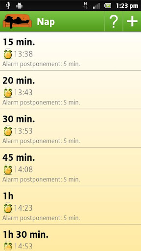 Tired of setting an alarm each time you want to have a nap? Never do it again with Siesta app! Only with two taps you will be able to sleep just the time you need.