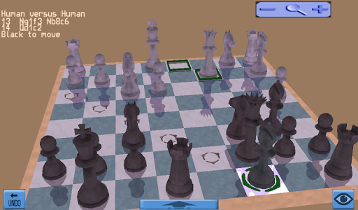 You can play in 2D or 3D. In 3D mode, you can zoom and rotate the board as you like.