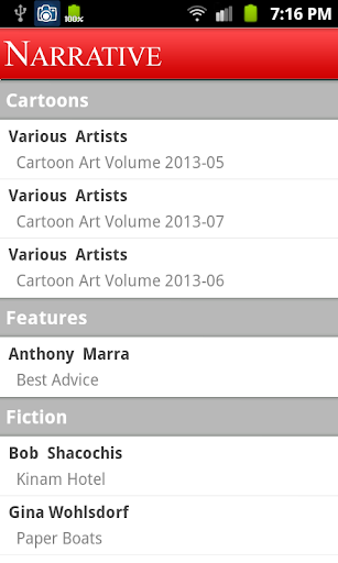 In addition to consistently excellent and always available stories, poems, and essays, the Narrative app also features original photography, cartoons, interviews, profiles, book reviews, and graphic stories. All for free.