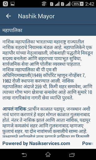 Nashik Municipal Corporation was formed on November 7, 1982 as a body corporate under The BPMC Act, 1949. NMC serves an area approximately 259 sq. kms, including the city and its peripheral areas and provides a range of civic services to around 10 lac citizens of the city of Nashik.