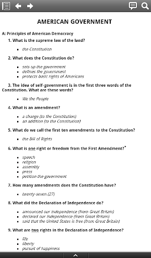 As you prepare for U.S. citizenship, Learn About the United States: Quick Civics Lessons will help you study for the civics and English portions of the naturalization interview. There are 100 civics (history and government) questions on the naturalization test. During your naturalization interview, you will be asked up to 10 questions from the list of 100 questions. You must answer correctly at least six (6) of the 10 questions to pass the civics test. Applicants who are age 65 or older and have been a permanent resident for at least 20 years at the time of filing the Application for Naturalization, Form N-400 are only required to study 20 of the 100 civics test questions for the naturalization test. These questions are flagged with an asterisk (*) in this booklet. Learn About the United States contains short lessons based on each of the 100 civics (history and government) questions. This additional information will help you learn more about important concepts in American history and government. During your naturalization interview, you will not be tested on the additional information in the short lessons. There are three components to the English portion of the test: speaking, reading, and writing. Your ability to speak English is determined by the USCIS Officer based on your answers to questions normally asked during the eligibility interview on the Application for Naturalization, Form N-400. For the reading test, you must read one (1) out of three (3) sentences correctly to demonstrate an ability to read in English. There is a reading vocabulary list with all the words found in the English reading portion of the naturalization test included in the back of this booklet. For the writing test, you must write one (1) out of three (3) sentences correctly to demonstrate an ability to write in English. There is a writing vocabulary list with all the words found in the English writing portion of the naturalization test included in the back of this booklet.