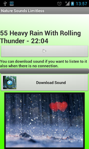 ----INTERNET IS REQUIRED BECAUSE THE SOUND FILES ARE STREAMED FROM INTERNET. ONCE YOU LISTEN TO ONE SOUND, IT WILL BE DOWNLOADED AND NO MORE INTERNET IS REQUIRED.----