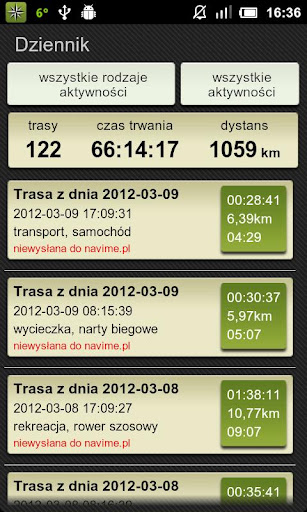 - nagrywanie tras z podziałem na różne rodzaje aktywności