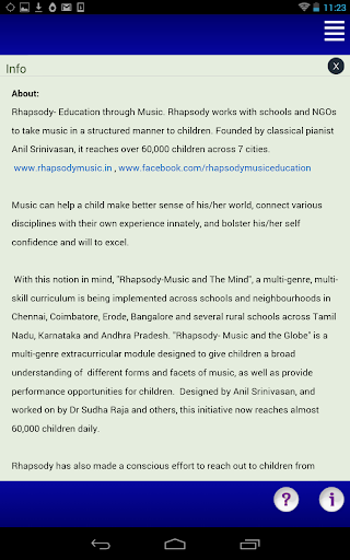 Songs are compiled and recorded by Rhapsody- Education through Music. Rhapsody works with schools and NGOs to take music in a structured manner to children. Founded by classical pianist Anil Srinivasan, it reaches over 60,000 children across 7 cities.www.rhapsodymusic.in