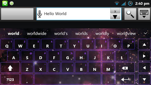 HD Keyboard skin with glorious Nebula purple background, and semi transparent keys.
