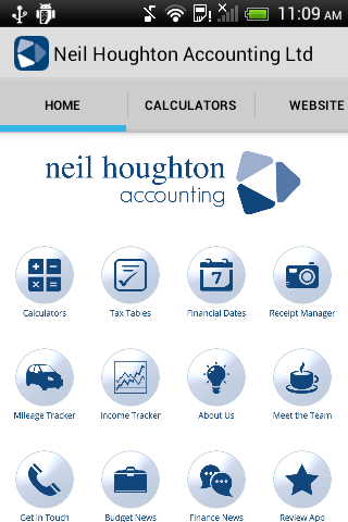 Now you can have instant access to your latest business and personal accountancy facts, dates and calculators. Using the latest technology, the ‘News’ section will be updated directly by us, so you get the very latest news, views and offers from Neil Houghton Accounting Ltd - in real time, all through your App.