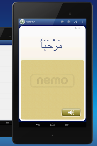 Nemo教您學會最常用語,讓您立即說一口自信的阿拉伯語。Nemo適用於安卓手機和平板電腦,在全球范圍內有上百萬的下載量。