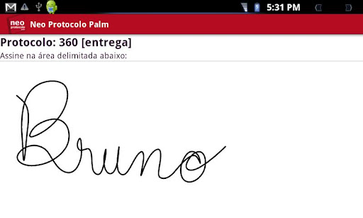 Neste aplicativo é possível assinar um protocolo diretamente na tela de um dispositivo android.