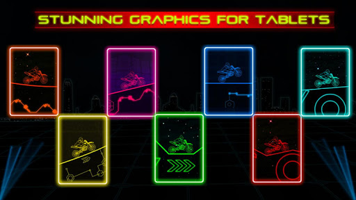 Ride the neon bikes in complete neon theme backgrounds. Experience the thrilling neon ride with