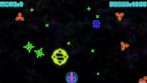 Hundreds of super-colourful and animated enemies fill the screen in waves, impossible to contain! Increase the firepower of your space ship, find and keep a balance to survive for as long as possible, making a clean sweep of everything that moves with the super wave bomb!
