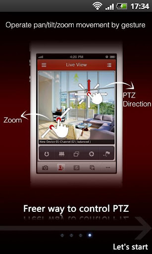 Neostar (Android) mobile client software, which is based on Android OS (Version 2.3 or higher), can be used to remotely monitor the live video from embedded DVR, NVR, network camera, network speed dome and DVS via wireless network, play back record files, control alarm output and realize PTZ control as well.