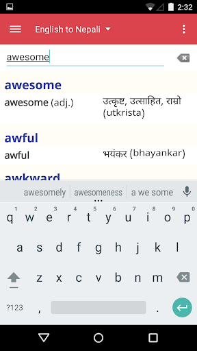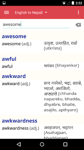 First offline dictionary for Nepali Language. It's a two way dictionary, that means it is Nepali-English dictionary as well as English-Nepali dictionary. Now, try out the word games to learn more words.