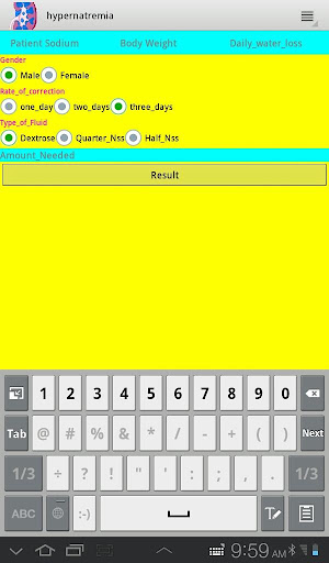 3-Hypernatremia Or Hyponatremia treatment ,with hourly rate of correction as never been give by any other calculators,with different options for rate of correction and type of fluid used.