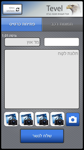 The application enables the user to upload text descriptions of vehicle's faults as well as pictures, to the Tevel Software LTD. "Nesher" database.