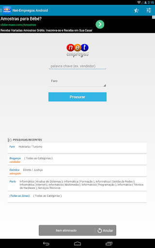 - Pesquisas no contexto do anuncio (por empresa, zona e categoria profissional).