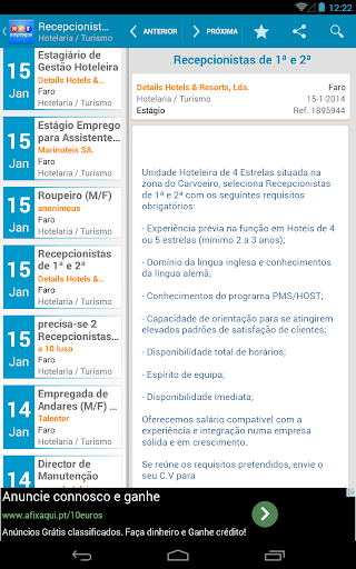 - consultar anúncios de emprego com email de contacto incluído (para utilizadores registados);