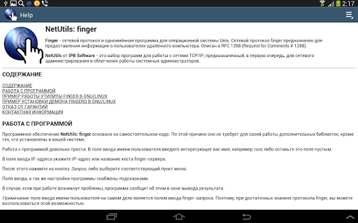 Серия NetUtils (сетевые утилиты) - finger. Данное программное обеспечение предназначенно в первую очередь для системных администраторов и программистов. Программа представляет из себя аналог утилиты finger операционной системы Unix, но основана на собственном коде.