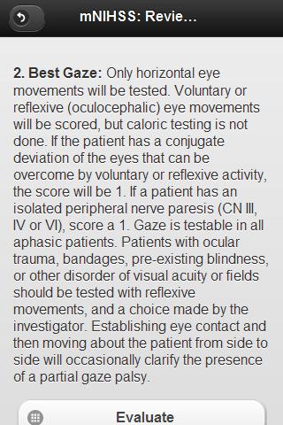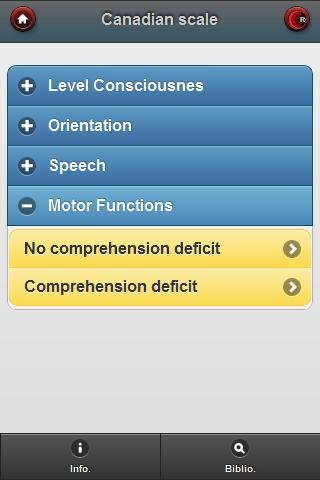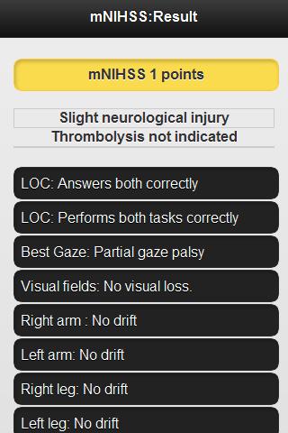 It includes the rules for conducting a systematic neurological examination right in the "Code Stroke" Calculate the score on the different rating scales, making a summary of the exploration and giving a prognosis and treatment recommendations.