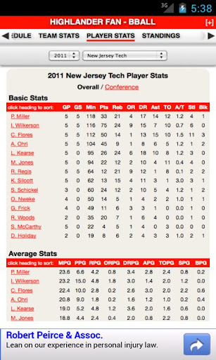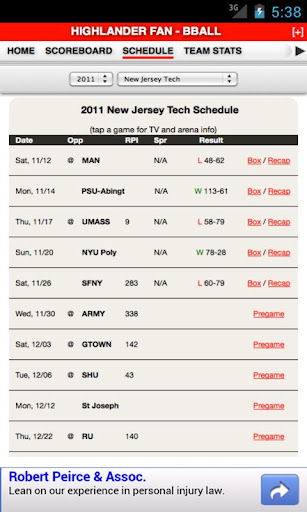 -The New Jersey Tech Highlanders' full schedule with quick-view access to full game boxscores and player stats
