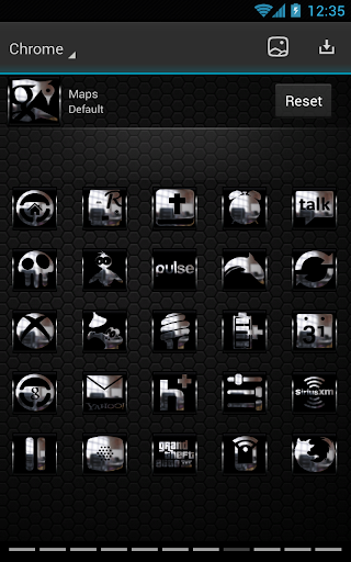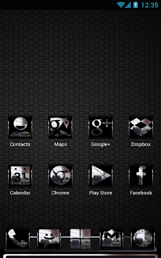 This is a Next Launcher 3D theme with dark chrome icons. Perfect for users of black Next Launcher Themes and the dark themes!